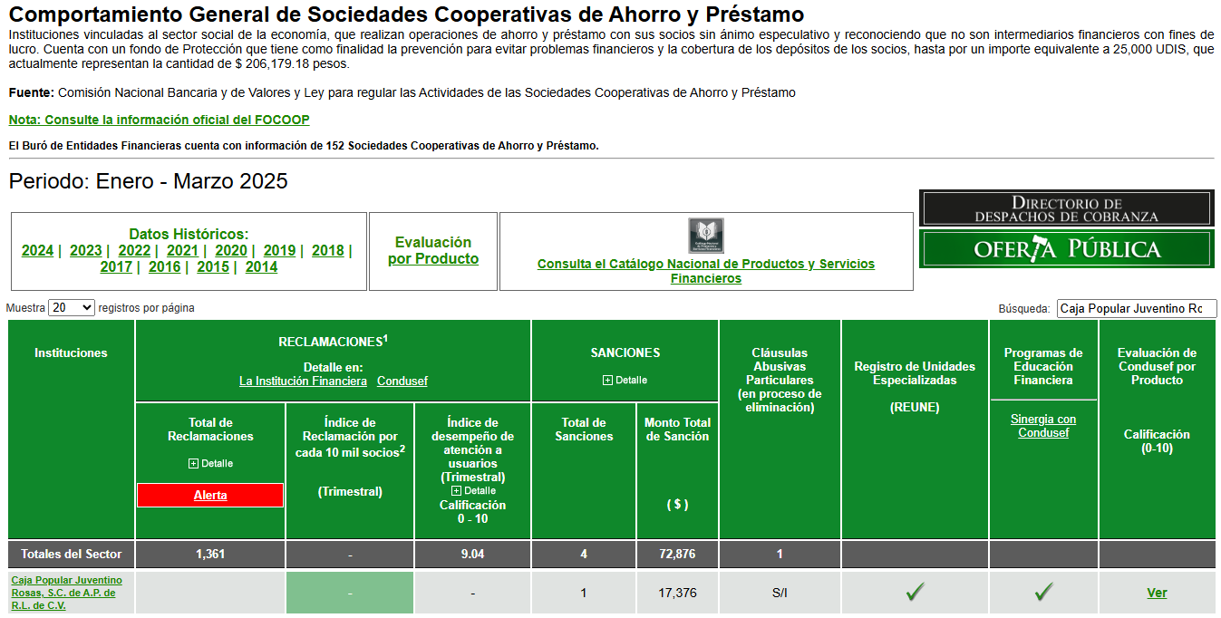 Podrás consultar la información que consta de Caja Popular Juventino Rosas S.C. de A.P. de R.L. de C.V, en el Buró de Entidades Financieras dando clic aquí